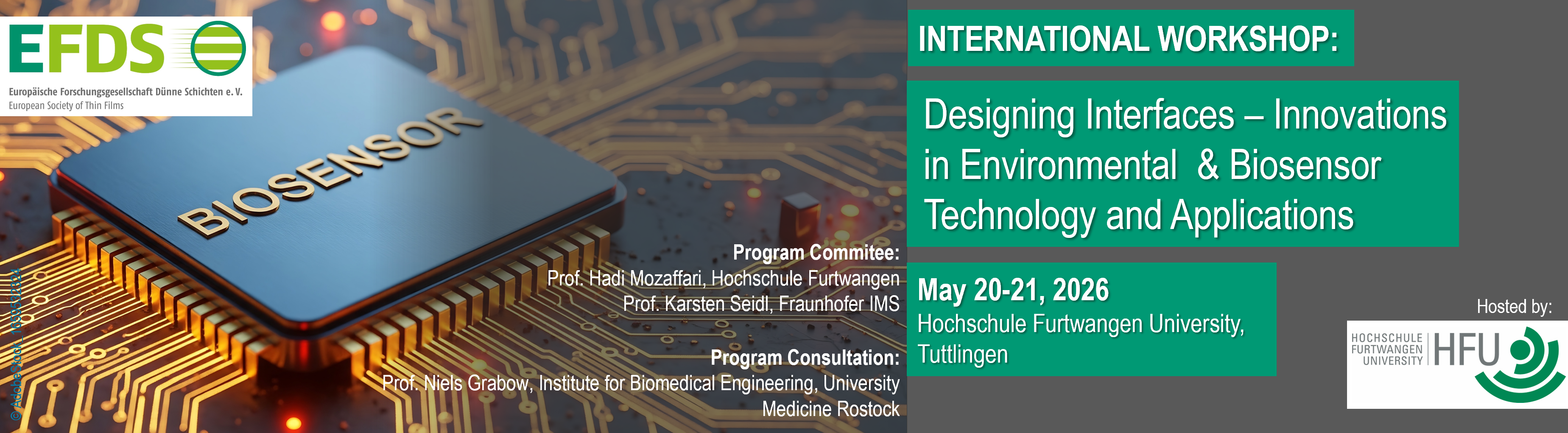 In presentations, experts will provide insights into current developments and their applications – from fundamental concepts to practical examples. The workshop will cover diverse approaches, including medical and diagnostic biosensors, environmental and process monitoring, printed and flexible sensor technologies, photonic and optical sensing solutions, as well as implantable sensors and encapsulation strategies. The aim is to convey a broad understanding of the possibilities in modern sensor technology and to stimulate new ideas for applications in healthcare, environmental analysis, and industrial process control.